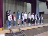 111名の1年生が体育館で2〜6年生の歓迎を受けました。写真は入場の様子です。