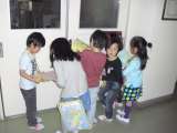 がんばっています。ファイト! 6年生も手伝いに来てくれています。