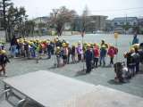 昼休みの校庭の様子です。1年生が下校のために集まっていました。