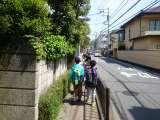 尾山台駅を出て、等々力小学校に向かっています。(4月25日)