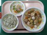 今日の給食は、たけのこごはん、鰆の西京焼き、春キャベツのみそ汁、河内晩柑です。今...