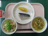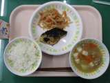 今日の給食は、ごはん、さばの南部焼き、こんにゃくのピリ辛いため、豚汁です。等々力...