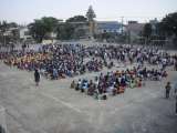 全体が集合しています。今日の練習についての説明がありました。音楽隊もがんばってい...
