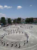 5,6年生の団体競技、地球は回る(大玉送り)です。勝敗の行方は、、、