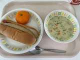 <献立> ホットドッグ 牛乳 クラムチャウダー 冷凍みかん