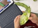 1時間目に、栄養士の先生の話をよく聞いて、そら豆の皮むきに挑戦しました。まずは...