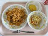 <献立> スパゲッティナポリタン 牛乳 じゃがいものハニーサラダ 米粉のかぼちゃ...