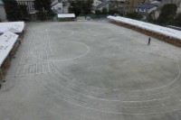 前日準備の最後は、先生方がきれいに校庭をならした後、ライン引きや会場の準備をしま...