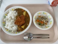 <献立>チキンカツカレー牛乳塩ナムル明日は運動会ということで、「カツ」を入れて、...