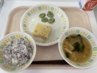 <献立>ゆかりごはん牛乳擬製豆腐みそ汁そら豆2年生がさやむきをしてくれたそら豆を...