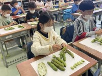 2年生 そら豆のさやむき