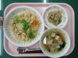 7月15日の給食は、えびチャーハン、中華スープ、パイナップルゼリー、牛乳です。1...