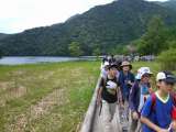 林間学校2日目。10:15湯ノ湖到着。雲行きが少し怪しくなってきました。湖と源泉...