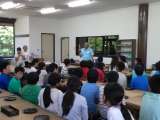 林間学校3日目。8:45。木彫りの里でいよいよ日光彫り体験です。講師の先生に指導...