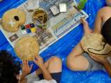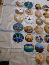 夕顔の実を乾燥させた硬い皿状のものに、吊るすための穴をあけていただき、チョーク...