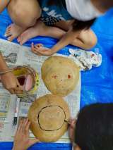 出来上がったものに上薬を塗っていただいて完成です。完成まで待ち遠しい子どもたち...