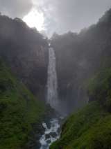 華厳の滝の水量が多く、その激しさから水しぶきで霧のように煙つていました。