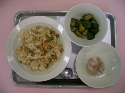 ☆今日の献立☆ えびチャーハン 牛乳 ジャンボシュウマイ きゅうりの中華味 ...