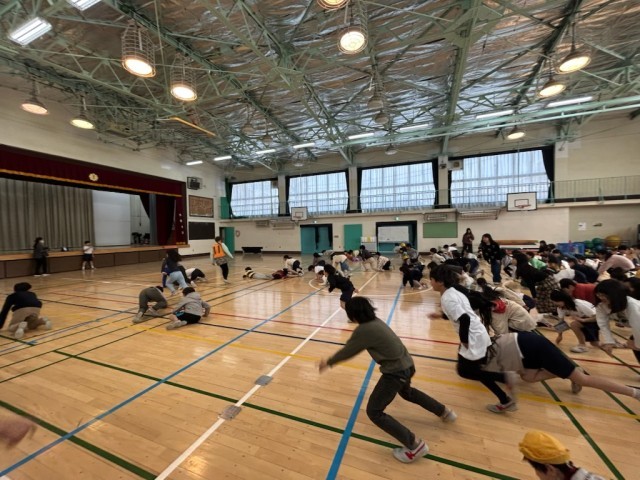 運動委員会の司会で1、2、3年生が縄跳びを行いました。前跳び、交差飛びなど技を...