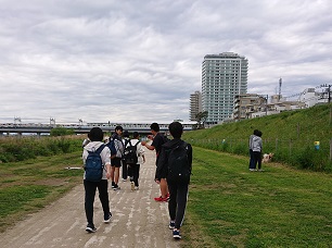 全校で多摩川の20キロウォークに挑戦。実は奥中では30年近く前にも多摩川を歩く行事があったそうです。その伝統をチャレンジデーとして復活させました。20キロを歩き切ることで、やればできるという自信を付けました。