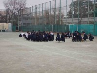 昼休みの時間に地震を想定した避難訓練を実施しました。校庭で遊んでいた生徒は中央付...
