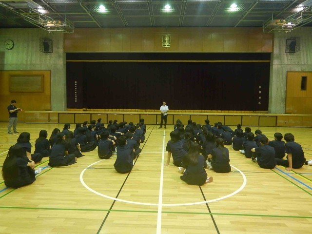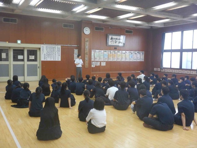 今日で1学期が終わります。写真は1,2年生の学年集会の様子です。