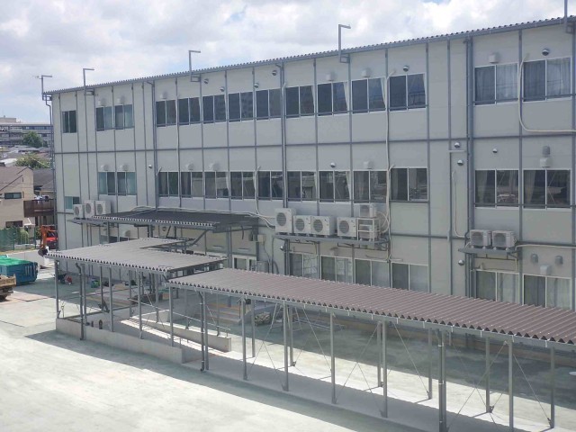 仮設校舎外観 公開日 2025/07/31 更新日 2025/07/31 校舎改築 仮設校舎が連絡通路も含めて出来上がりました。仮設校舎工事用の仮囲いが撤去されたところです。8月中には仮設校舎への引っ越しが行われることになります。 いいね(2)