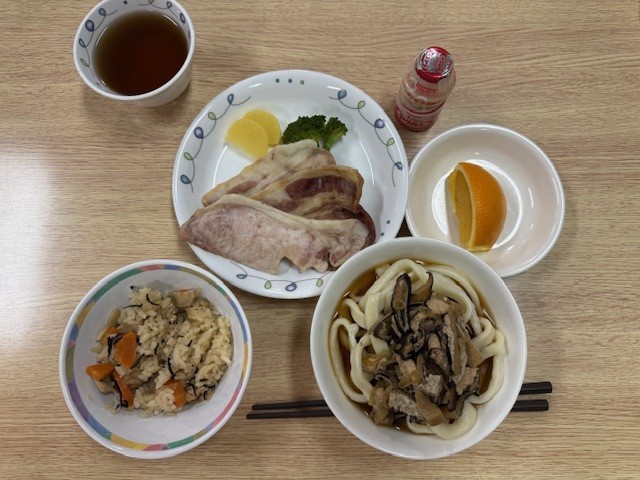 今日の夕食は、手作りうどん、炊き込みご飯です。