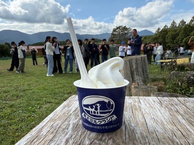 最終目的地、富士ミルクランドに到着して、濃厚ミルクソフトクリームを食べました!
