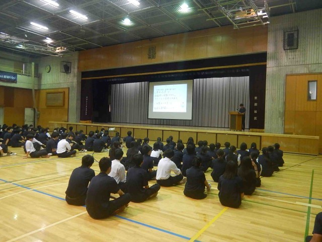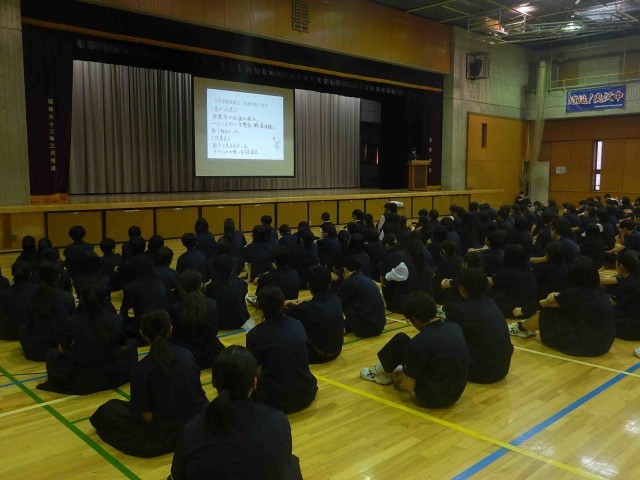 生徒会朝礼の様子です。まもなく前期の委員長もバトンタッチの時期になります。