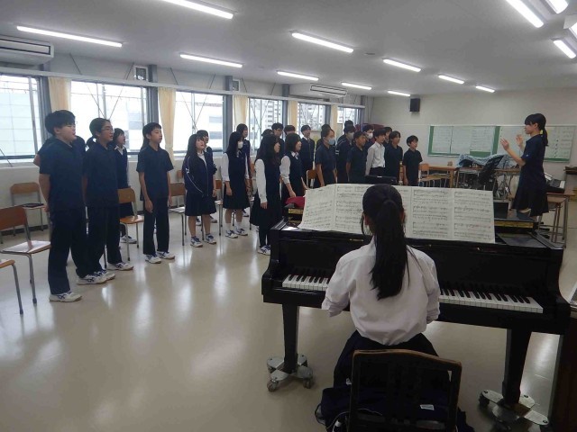9日(木)、2回目の合唱練習の様子です。廊下でパート練習をするクラスや、教室や音楽室で全体で合わせる練習をするクラスなど、それぞれの計画で練習を進めています。