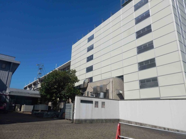 正門内右側、北校舎の仮囲い設置が進んでいます。