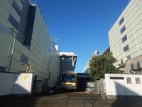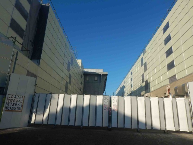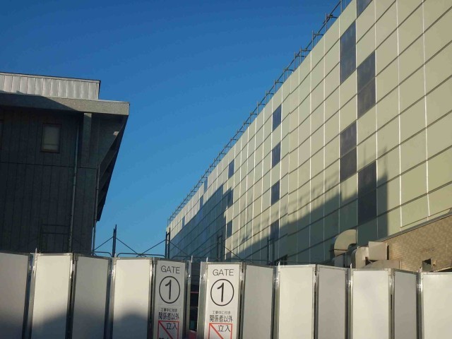 旧正門の門扉が撤去され、工事用のゲートが設置されました。また、中庭にあった石碑が校庭に移設され、北校舎の中庭側全面に仮囲いが設置されました。