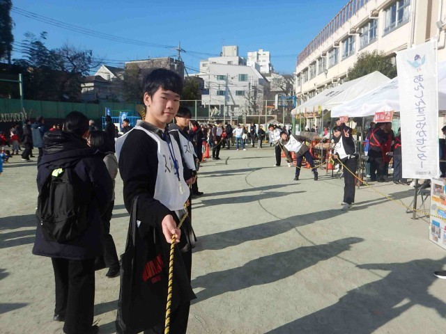 新春奥沢地区まつりに多くの奥沢中生がボランティアとして参加してくれた様子です。