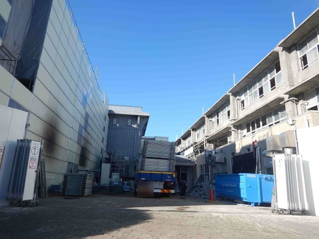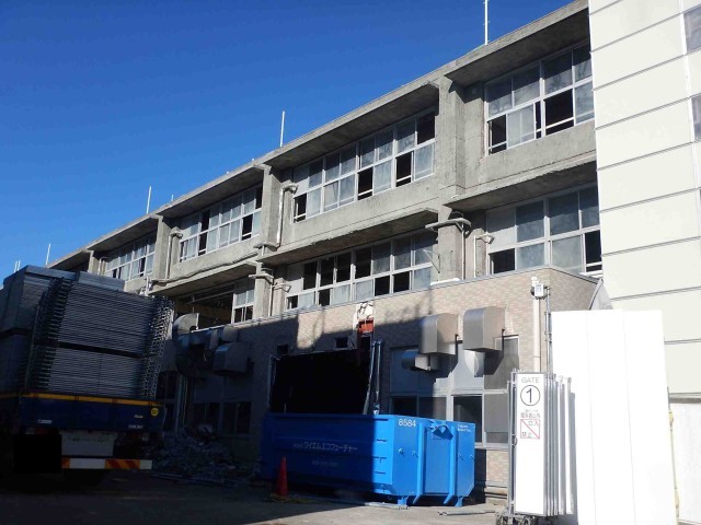 本格的な校舎解体前の仮囲いの撤去が進んでいます。