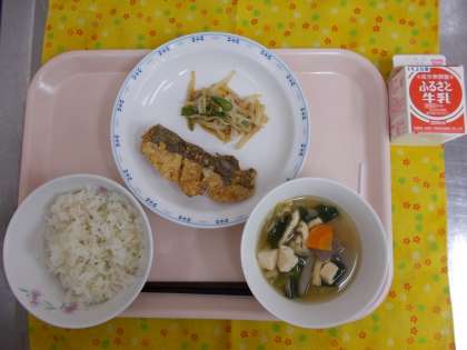 ・麦ごはん ・牛乳 ・ホキのごまからし揚げ