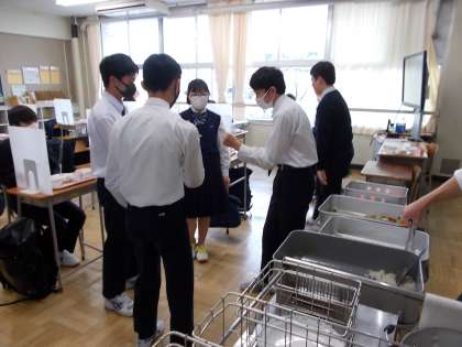 いつもほぼ完食の3年生の教室では、おかわりをめぐってじゃんけんが行われていました。勝った生徒はガッツポーズです。