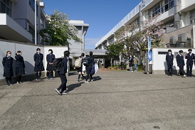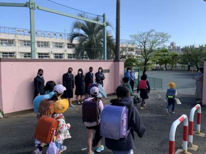 和みの学び舎あいさつデー 公開日 2021/04/15 更新日 2021/04/15 コラム 今日は学び舎のあいさつデーです。 校門には生活委員、保護者の皆さん、教員が立って、登校してきた生徒や道行く人にあいさつをします。 同じ時間、生徒会役員は学び舎の小学校で出前あいさつ。今日は東玉川小学校に行きました。 ところで校地のまわりには2年生が昨年植えたチューリップが咲きました。もう終わりごろですが、通る人を楽しませています。 いいね(0)