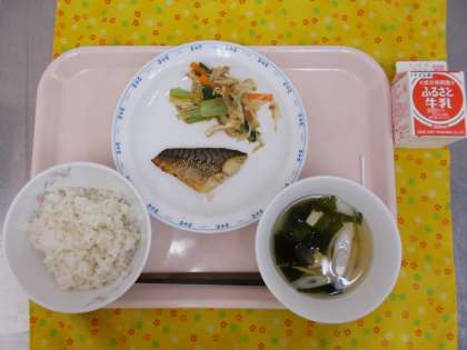 ・麦ごはん ・牛乳 ・さばの香味焼き