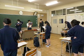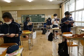 タイマーと競争、友達と競争 公開日 2021/05/13 更新日 2021/05/13 コラム 英語では速く音読することも効果的な学習のひとつ。 3年生は3分間で本文を何回読めるか、やっていました。 そのあとは、前に出た二人より早く読むというゲーム。 みんな頑張っていました。 いいね(0)