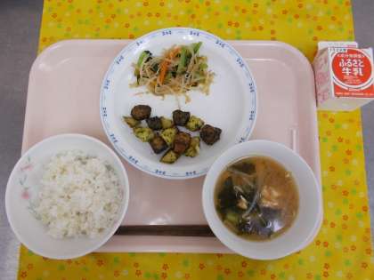 体育祭前最後の給食は、揚げたかつおに甘辛いたれと青のりをからめた『かつおのいそ揚げ』です。初夏のかつおは初がつお、秋のかつおは戻りがつおと言います。