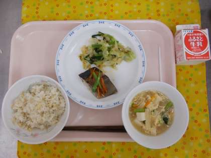 ・新しょうがごはん ・牛乳 ・焼きアジの甘酢がけ