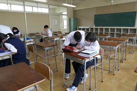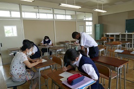 数学は少人数授業です。今は計算の小テスト中。先生が採点している間に、仲間に解き方を教えてあげる姿もあります。一人一人に寄り添って教えているので、みんな自信をつけていきます。