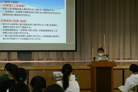 進路説明会は体育館とzoomのハイブリットで行われました。前半は本校の進路担当の先生から、進路選択の基本的な知識・情報についてのレクチャーがあり、進路先には様々な種類があることや、日程について認識を新たにしました。