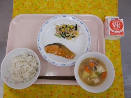・麦ごはん ・牛乳 ・鮭の照り焼き