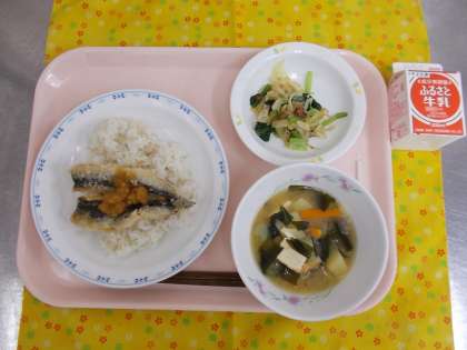 今日は、でんぷんをつけて揚げたいわしに大根おろしのたれをかけました。カリカリに揚げてあるので、骨ごと食べられます。