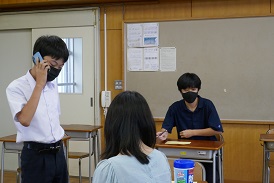 2年生は9月に職場体験学習を行います。今日は体験先に挨拶に行くためのアポイントを取る電話をかける日です。