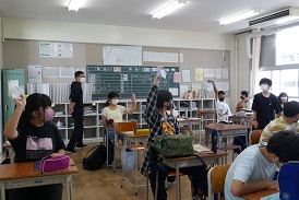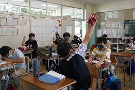 保健給食委員会はハンカチグランプリを開催中です。ハンカチを持っているかどうか調べています。