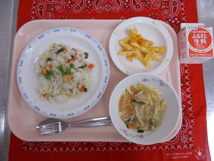 ・パスタ入り野菜スープ ・スパイシーポテト です。