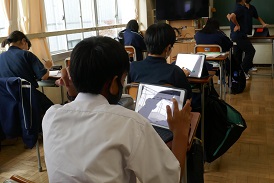 中間考査を明後日に控えて、ここまでの総復習をするクラスもあります。1年生の理科ではQubenaという、タブレットに入っているAIドリルを使って勉強をしていました。